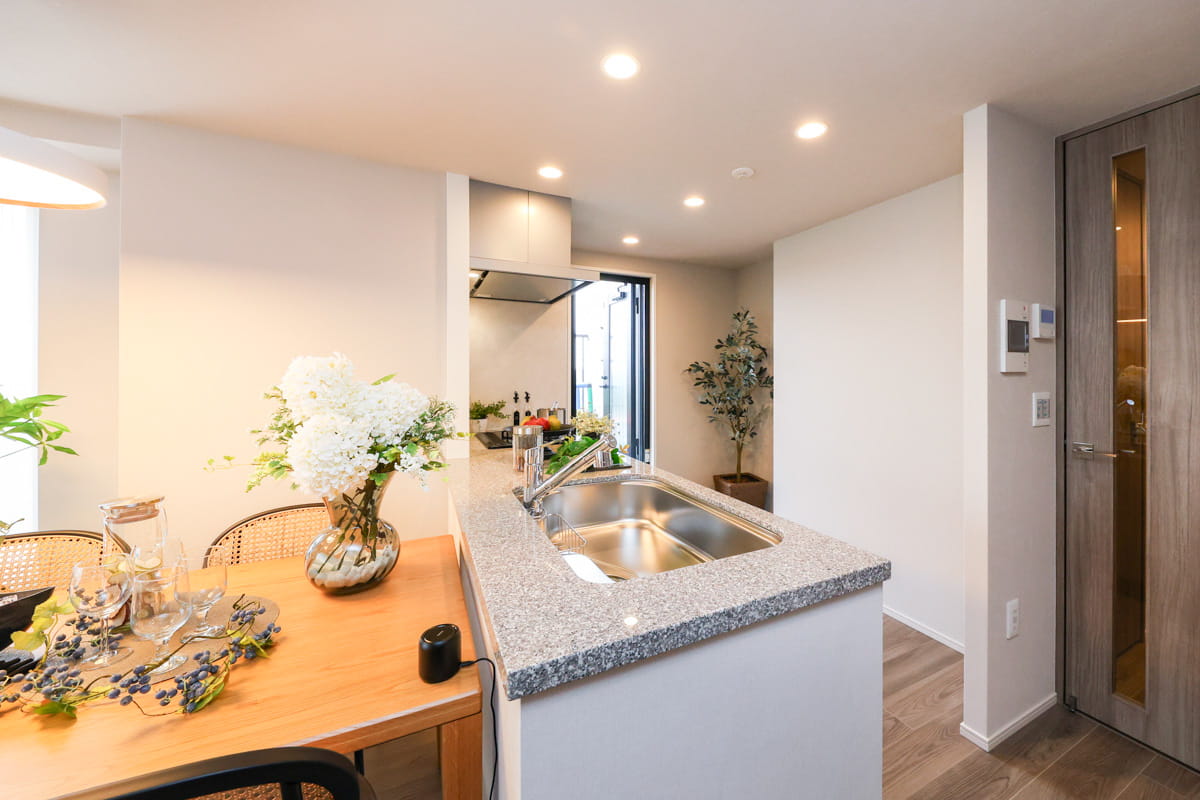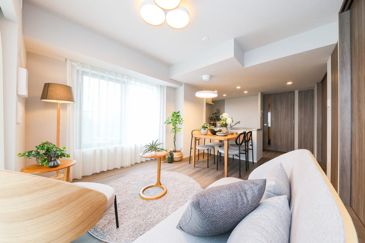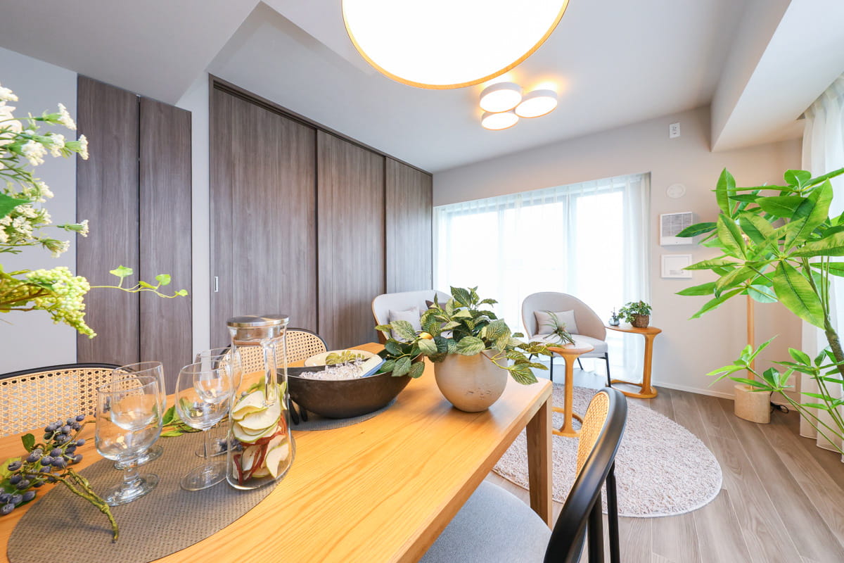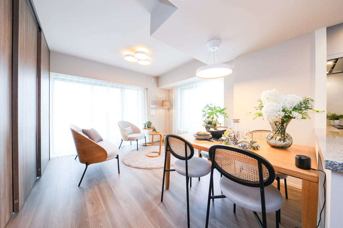 ※掲載の写真は、建物内モデルルームHタイプ(406号室)を2025年7月に撮影したものです。一部、インテリアオプションが含まれております。また、家具・調度品・インテリアオプションは販売価格に含まれておりません。