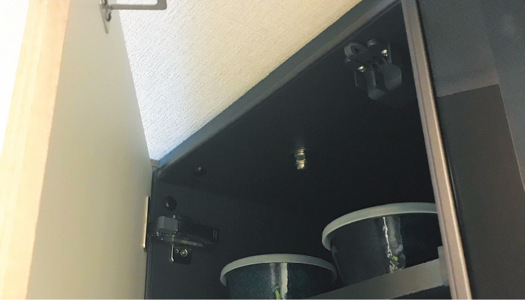 キッチン吊戸棚(一部除く)の扉部分には、日常の開閉がスムーズで地震時には扉をロックして収納物が飛び出すのを防ぐ「耐震ラッチ」を採用しています。
