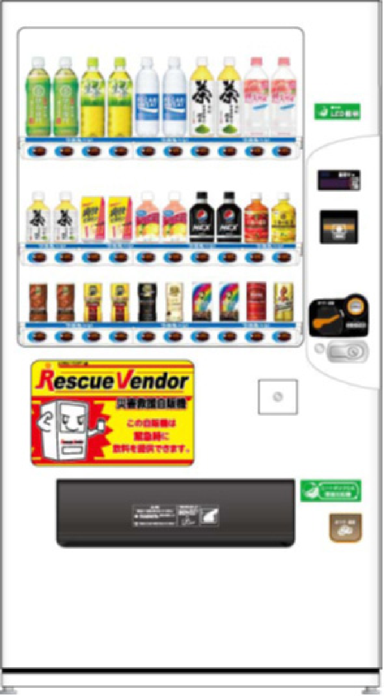 通常時のご利用だけでなく、緊急時には専用キーで設定を変更することで無料で飲料水を取り出すことができる緊急対応型の自動販売機を敷地内に設置しています。万一の際の飲料水確保に役立ちます。
