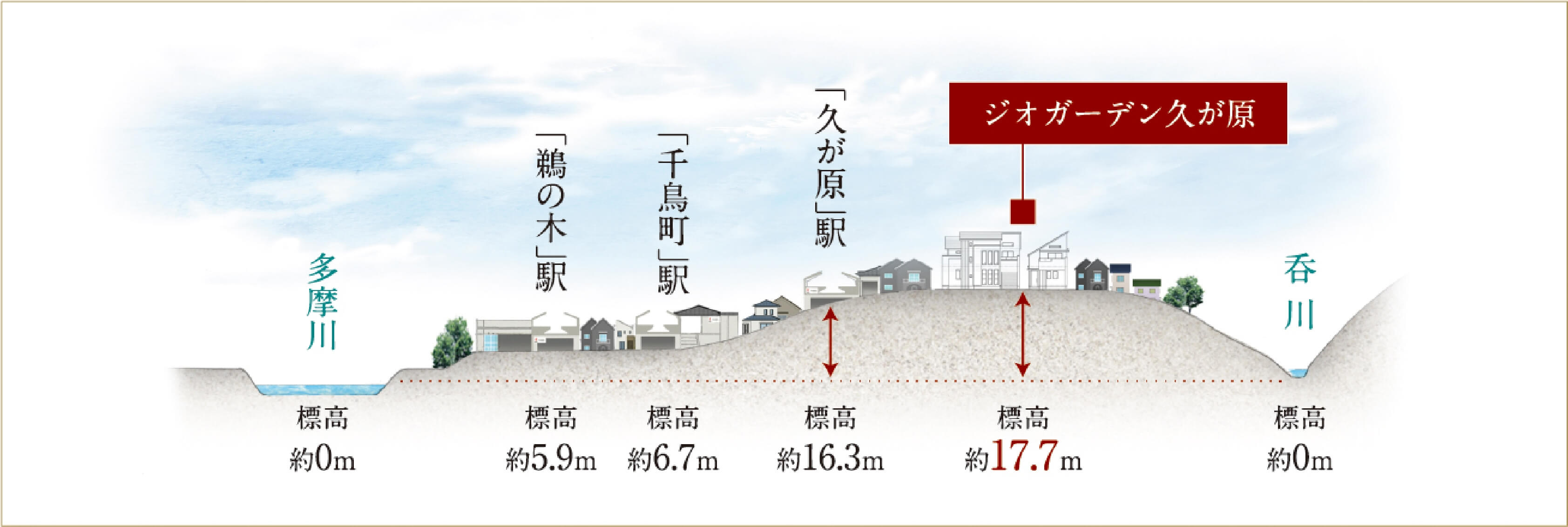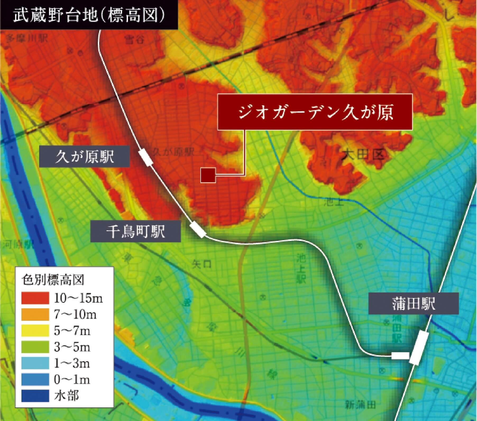 久が原はその大部分が、住宅地盤として良好な武蔵野台地の突端である久が原台地に位置しています。