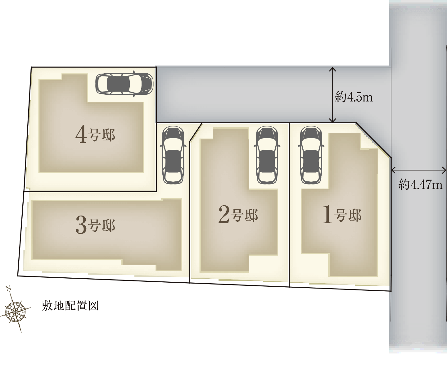 大通りから奥まった静隠の地に佇む全4邸。