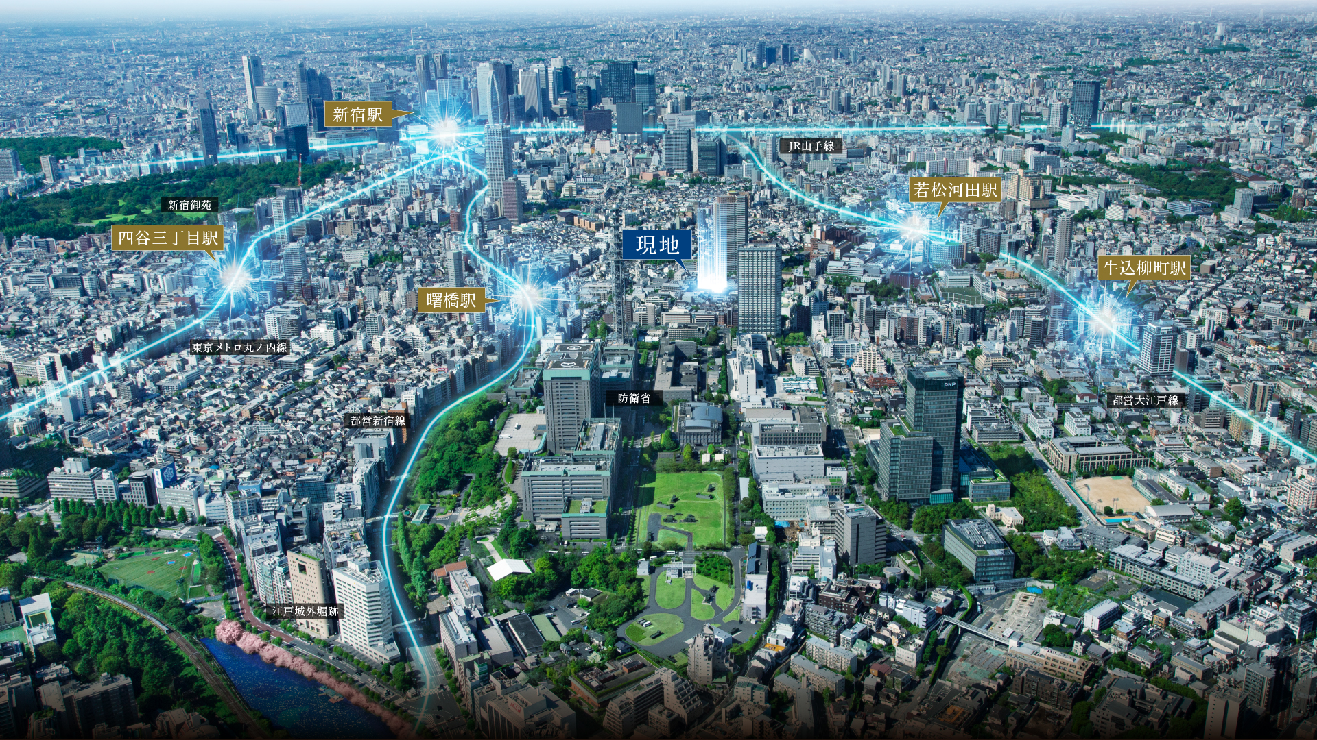 靖国通りや外苑東通り、女子医大通りといったメインストリートから奥に入っていることで、静寂を保ち続けている現地周辺。再開発がおこなわれ進化していくエリアの中で、穏やかな住宅地の風情を守り続けています。現在でも、近隣には分譲マンションが点在し、この地のステイタスを感じさせます。