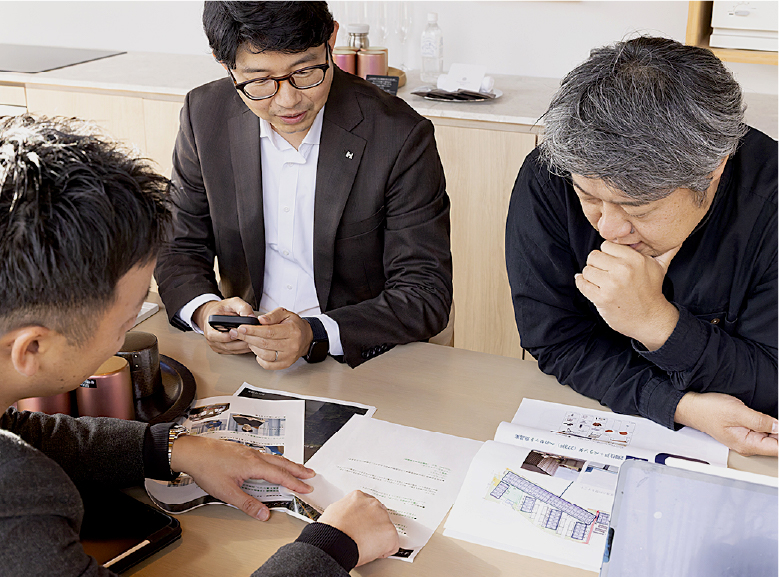 今回取材にご協力いただいた各ご担当者 左:(株)長谷工コーポレーション エンジニアリング事業部 第2設計室 西山氏 中:阪急阪神不動産(株)住宅事業本部 首都圏マンション事業部 杉山氏
