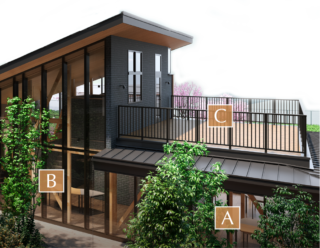 • C桜並木を望む2階テラス
