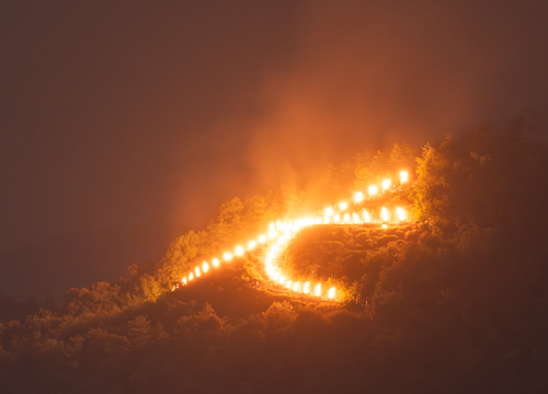 - みずみずしい新緑、紅に染まる山麓。折々の自然美を楽しめるテラスを4階に設けました。晩夏の空を彩る五山の送り火は、西賀茂の船形万燈籠、大北山の左大文字が望めます。