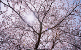 シダレ桜をシンボルツリーにした街角に備えた憩いの広場。