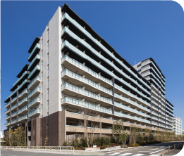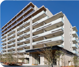 さらに配棟計画においても仙川の桜並木側や周辺の街並みに主開口面が開くよう配棟。ランドスケープも配棟計画も武蔵野の自然に呼応する、スケールの大きいレジデンスを目指しました。