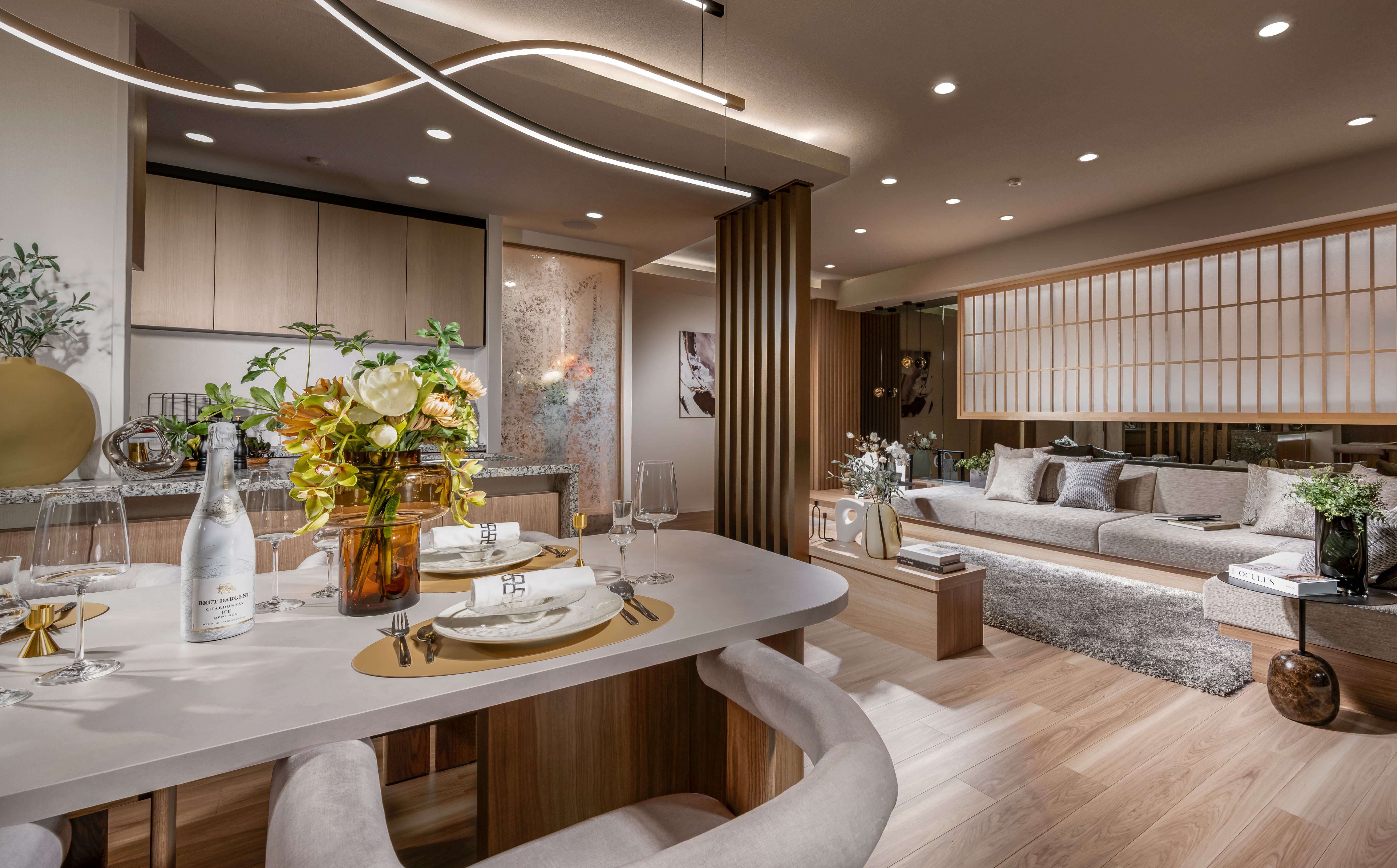 ※掲載の室内写真は、コンセプトルームにて2025年7月に撮影したものです(一部CG処理を施したものがあり、実際とは異なります)。また、設備・仕様等につきましては、グレードアップオプション(有償/お引渡し前の施工/お申し込み期限終了)、およびインテリアオプション(有償/お引渡し後の施工)等の商品が含まれております。メニュープラン・グレードアップオプションにつきましては、施工上の都合によりお申し込み期限が終了しております。家具・調度品・照明器具等は販売価額に含まれません。また、設備・仕様は各タイプにより異なります。予めご了承ください。