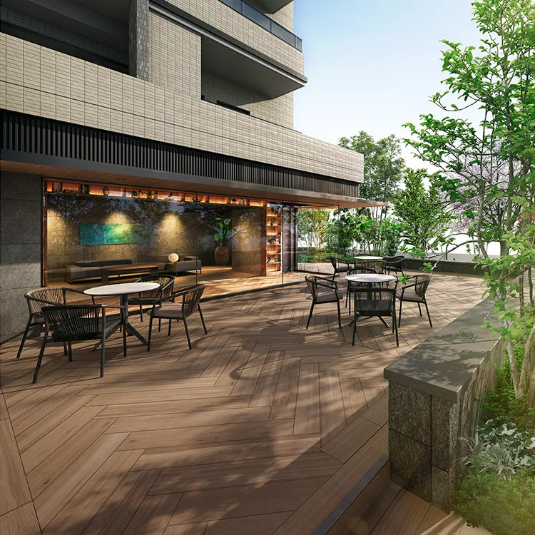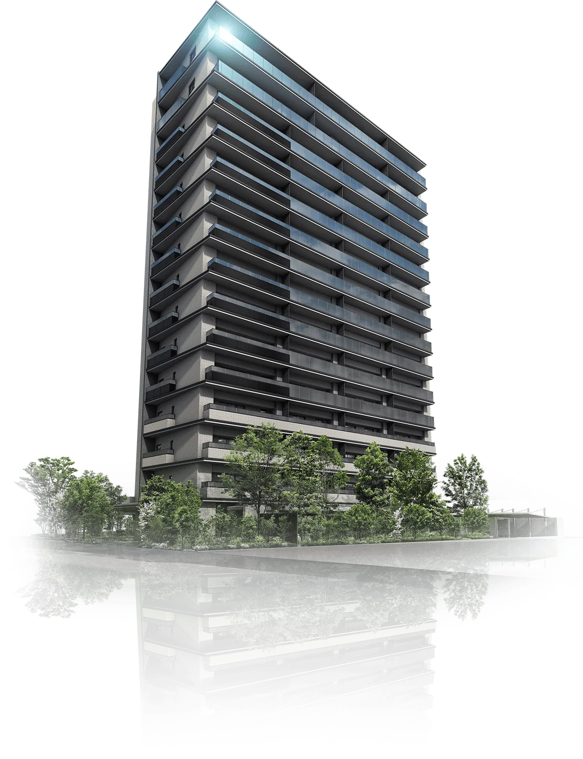 ※掲載の各完成予想図は、設計段階の図面を基に描いたもので、外観形状の細部・設備機器等を一部省略しています。また、建物の形状・仕様・色調・植栽等は、行政官庁の指導および施工上の都合により変更になる場合がございます。なお、現地周辺の建物等は一部省略している箇所がございます。あらかじめご了承ください。※描かれている植栽は、特定の季節やご入居時の状態を想定して描いたものではありません。また、予定種の成長後のイメージを基に描いており、竣工時には完成予想図程度には成長しておりません。あらかじめご了承ください。