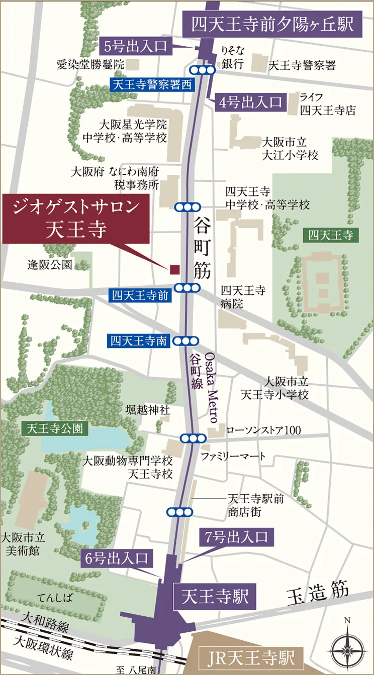 「四天王寺前夕陽ヶ丘」駅5号出口より徒歩約6分