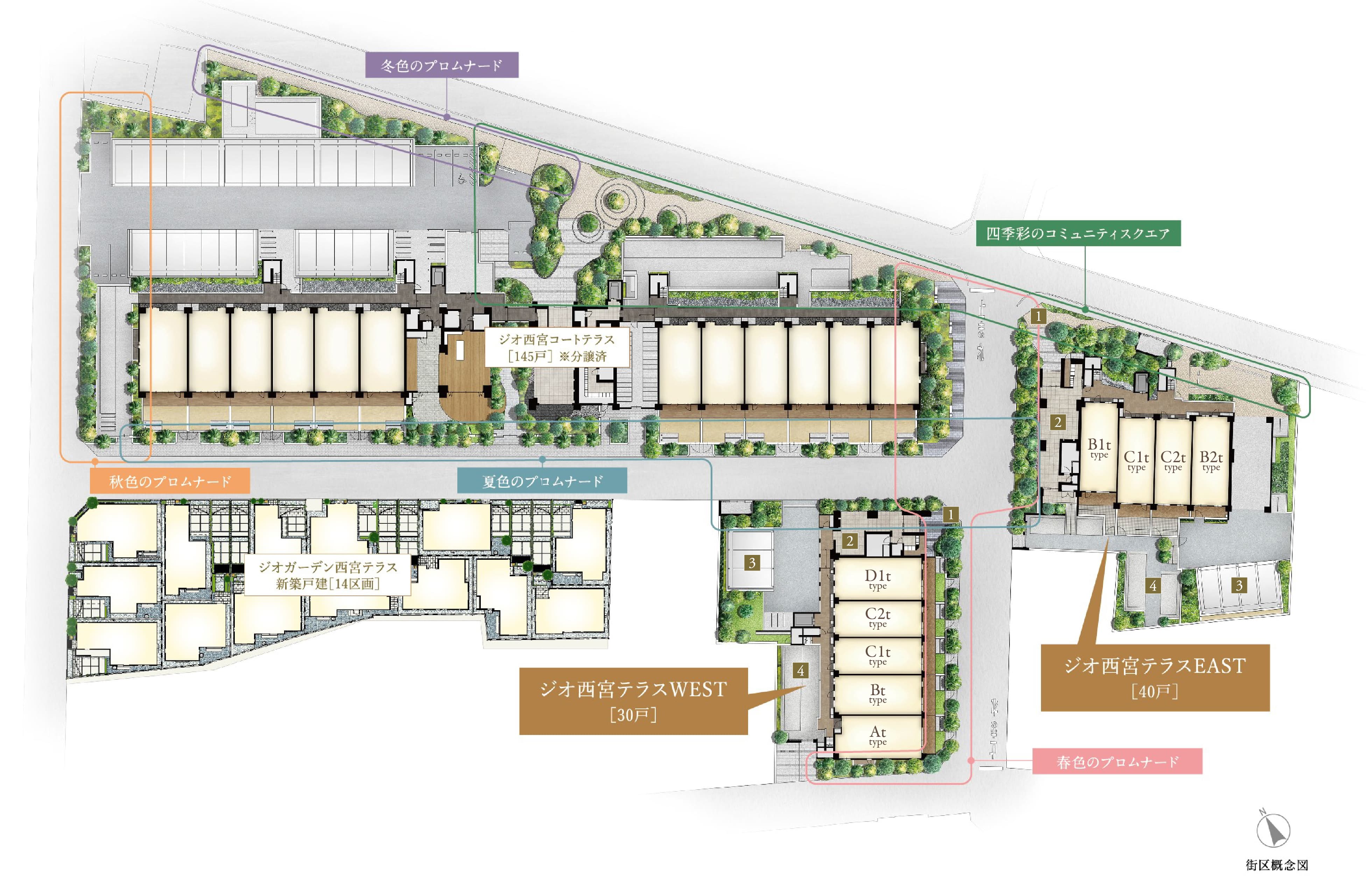 4つのプロムナードとコミュニティスクエア