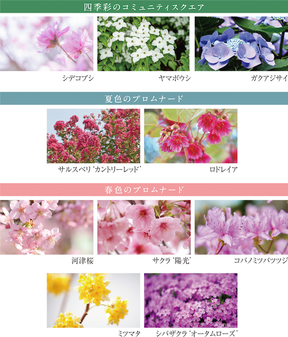 緑の潤いに包まれて、春夏秋冬の華やかさや豊かさに親しみ愉しむ、四季彩の庭園街区。