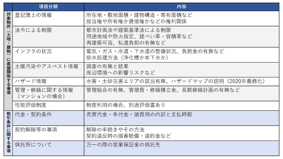 【物件に関する重要事項の主なチェックポイント】
