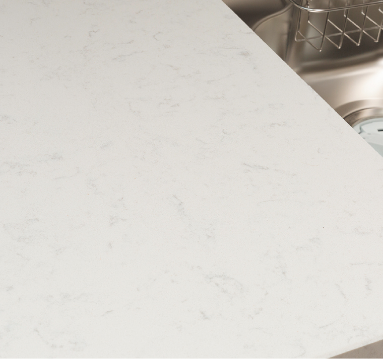 原材料の約90%を水晶とした高級人造石。高い硬度とデザイン性、低い吸水性など、メンテナンスに優れています。 ※天板には、維ぎ目が入る場合があります。