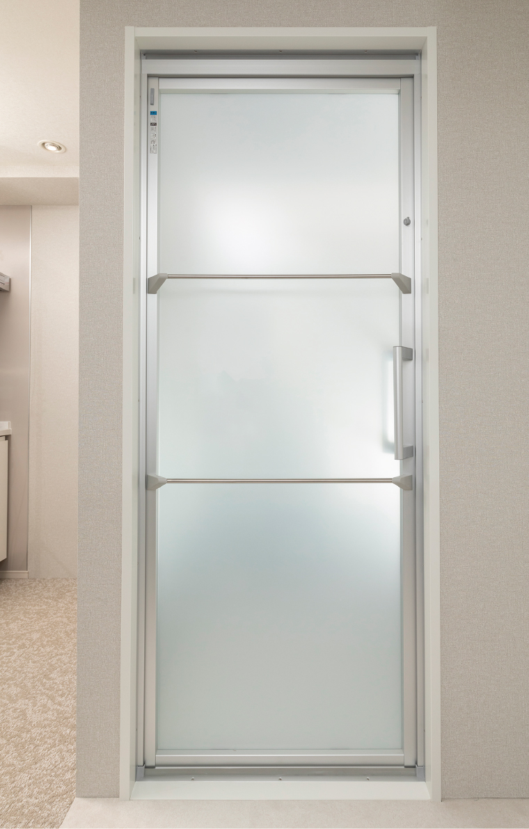 上枠やハンドル、ドアの換気口をすっきりスリムデザインに。ドア面材まわりのパッキンをなくすことでカビが生えにくく、お手入れが効率的です。また、2本のタオルかけを設けています。