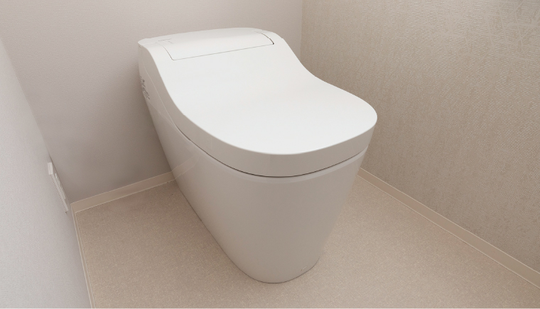 見た目に美しいコンパクトデザインのタンクレストイレを採用し、すっきりとした空間を演出。